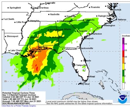 Meantime, Texas news tipster Linda in Houston’s been eyeing the evolution of “Potential tropical Cyclone #3” – likely to make Missasloppy in coming days: