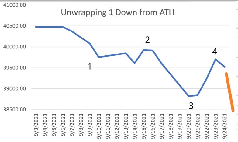 But as we look at the set-up from the all-time high (going into Labor Day) is looks like this: