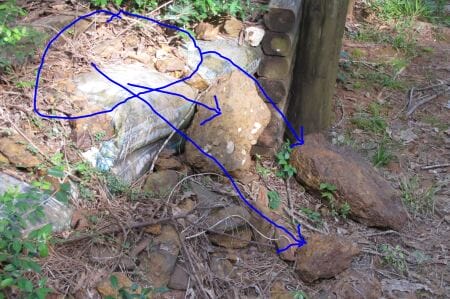 Pardon the blue lines, but they show how the rocks had been moved.