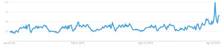 Is that Americans have been becoming increasingly concerned about Fed policy and resulting inflation ever since the lockdowns began. Here’s a 5-year Google Trends view of “inflation” as a search term:
