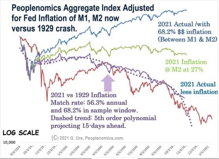 There are more charts and how we work up this comparison over on the Peoplenomics subscriber side. But morning’s like this, it’s useful to keep in mind that the markets would be headed at least 50% lower than present values if the Fed hadn’t just materialized more than $1.6 trillion dollars. Oddly coincident with the arrival of the “plandemic.”