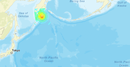 Dinner over, I woke this morning to find the science lining up with the gut. There it was! The source of our bout of the “sleepies.” A 7.8 shaker out where the islands of the Bering crash into Russia: