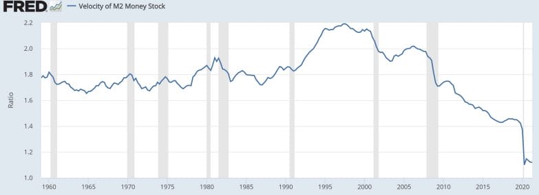 Where we are is in deep trouble because of the spread involving Fed money moves and the huge amount of stale money sitting in banks and so forth. This morning is NOT turning over as revealed in the velocity of M2. Which hasn’t been this bad ever as the last 6 months.