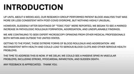 What’s not clear from lab samples (so far) is whether this is a complex biological or a mixed nanobot “thing” so the investigations continue. What investigators fear is that “fogs” could become a kind of “son of chemtrails” and (dispersed under cover of weather) could result in…well…whatever it is these globs of stuff in blood samples are. I’m told they are on the order of a hundred times larger than normal red blood cells.