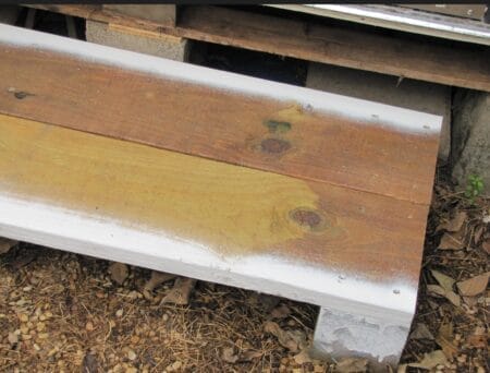 Thing is, I always catch my shoe on non-skid pads like tha, So this week, an experiment began with the new super-step for the generator shed. Talk about simple?