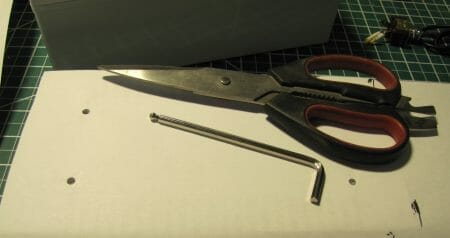 In this instance, the typing paper was held stable and a ball-end Allan wrench was then used to ream out the screw holes.