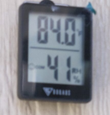 After a good half-hour, the temp was down to 77F and 57% relative humidity…and all this while the fan was only on low. The main reason for this prequel project was the temperature-sensing outlet will be wall mounted and will be set to come on when the temp gets up to 84, or so. That way, it shouldn’t run all the time, even during the (days from hell) part of summer in East Texas. Running on high got the room down to 70F.