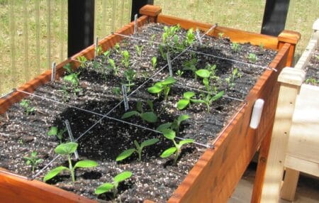Yes, that’s right: One tomato plant per square foot. Cold for them still, but they’ll be along soonly.