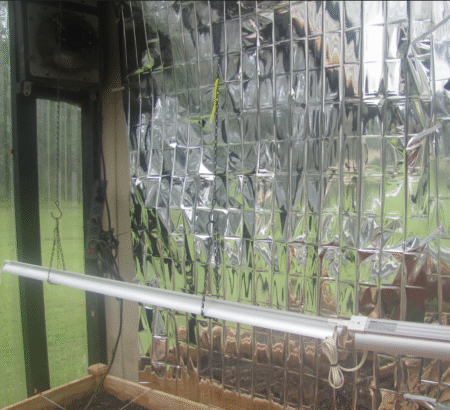 Greenhouse got way too hot this summer. My Ai stack said “Get some cheap space blankets, fool! Mount on L-bars sliced from a 2-by so they stand out an inch and a half from the studio wall. This will get you huge reductions in the greenhouse/studio wall heat transfer and also get you double the effective light for winter growing.”
