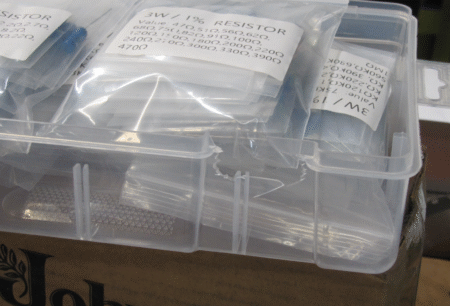 Speaking of Amazon – got a bunch of 3-watt resistors in this week (an 218K ohm 2 watt in the Ranger power supply is its “Chernobyl” weakness – it gets replaced no matter what. But see what happened in shipping to the nice box the manufacturer provided? Blam!