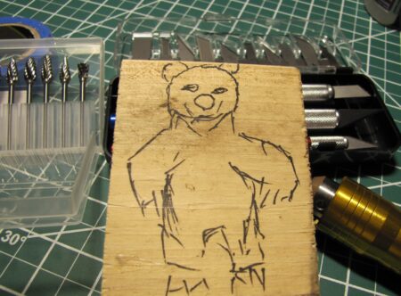 Another not too spendy hobby is power wood carving. For this, a bit of 2X4 scrap and a pen or pencil is all you need to get started. Here, we can see why I am not doing projects at Disney Imagineering for a geezerly living: