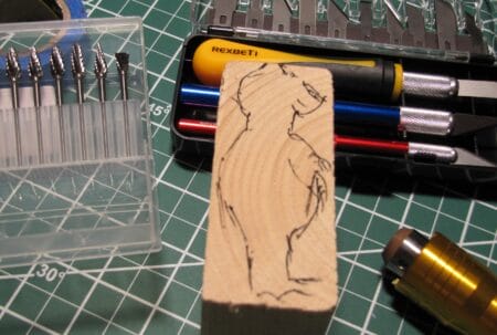 Another not too spendy hobby is power wood carving. For this, a bit of 2X4 scrap and a pen or pencil is all you need to get started. Here, we can see why I am not doing projects at Disney Imagineering for a geezerly living: