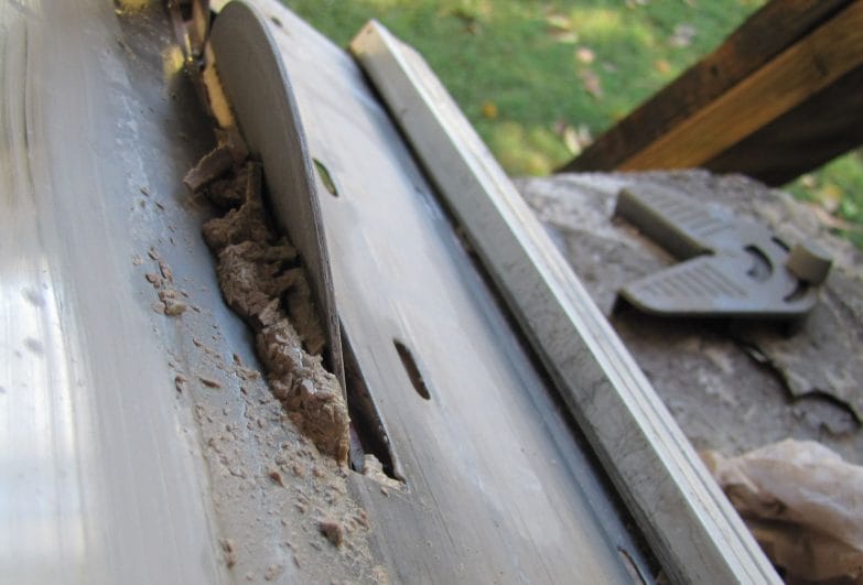 One thing, though: Be aware that while you’re cutting those impossible angles for corners on a 45-angle saw that all kinds of crud will be caught in the saw, so every second or fourth tile cut, you’ll want to get the slivers out of the way before going on.