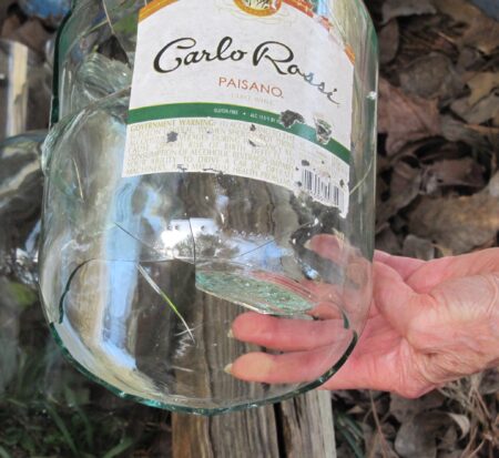 “I came out here, like I always do, and there’s no way the raccoons or possums could knock out the bottom of wine jugs.”