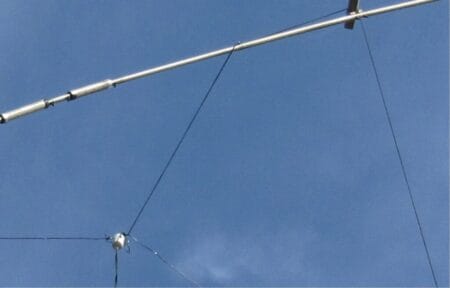 Snags with the “raising halyard” aside, here’s a view in the sky of the new W5GI “Mystery Antenna” which I picked up last year from K4TR’s shop over here. The details are about a quarter of the way down his home page.