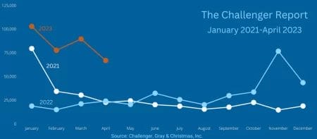 “U.S.-based employers announced 66,995 cuts in April, a 176% increase from the 24,286 cuts announced in April 2022. It fell 25% from the 89,703 cuts announced in March, according to a report released Thursday from global outplacement and business and executive coaching firm Challenger, Gray & Christmas, Inc.