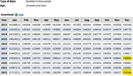 What matters to future historians will be what Total Working population shows up in the database. Which is this: