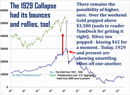 To us, present times are strong on the 1929 Replay vibe, but it riffs off one o the Dozilla Meets… series. Because 1929 didn’t have “push-button money” creation. Financial Engineers lacked global scope.
