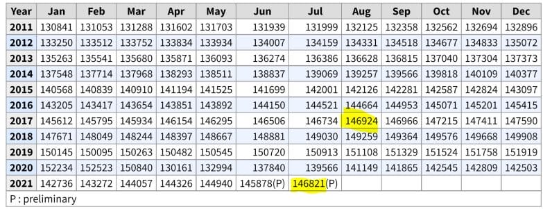 Here’s how the lie works: Non-farm Jobs now are still below where they were in August of 2017! Four years ago!